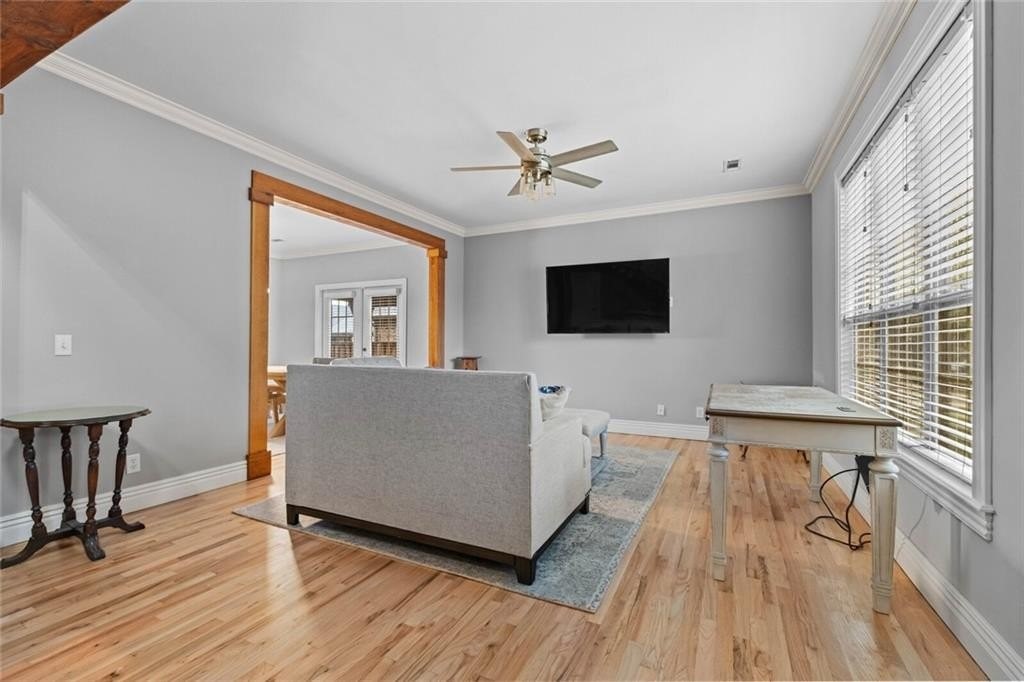 Welcome to extremely sought after Chapel Hill Subdivision where kids are abundant and families are friends. Enjoy the walking trails and Milk Run Biking Trail then head to the community pool and clubhouse where the kids can swim or play on playground and the adults can relax. European style home with beautiful landscaping invites you to swing open your new front door and bask on the brand new hardwood floors leading you to the formal living area with a large window beaming natural light. Continue to the dining room with french doors to outdoor pergola. The modern kitchen is perfect for families with an island, large pantry, cathedral ceiling nook, and opens to another large living area perfect for entertaining. Primary is on main floor with ensuite featuring dual vanities, tiled shower, tub and WIC. Upstairs adds 3 more bedrooms, 2 full baths and a large media room to get away from life and watch the game. Flat fenced backyard, new roof in 2022 and just minutes to Crystal Bridges, Amazeum, Orchards Park and I49.